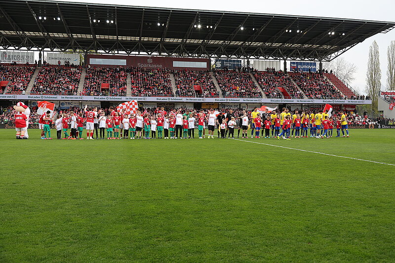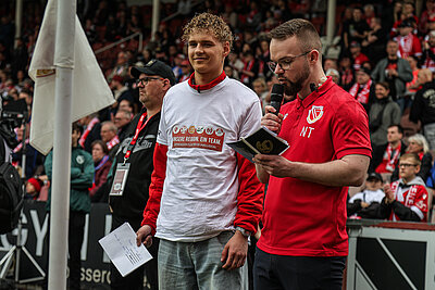 Den krönenden Abschluss der Projektwoche bildete der Heimspieltag des FC Energie Cottbus gegen Rot-Weiss Essen. Inklusion wurde hier sichtbar gelebt: Menschen mit Behinderung unterstützten aktiv hinter den Kulissen und waren Teil des Stadionerlebnisses. Ein weiteres Highlight war der Einlauf der Mannschaft, bei dem die Kinder aus dem Projekt „Kicken mit Handicap“ die Profis auf das Spielfeld begleiteten.
