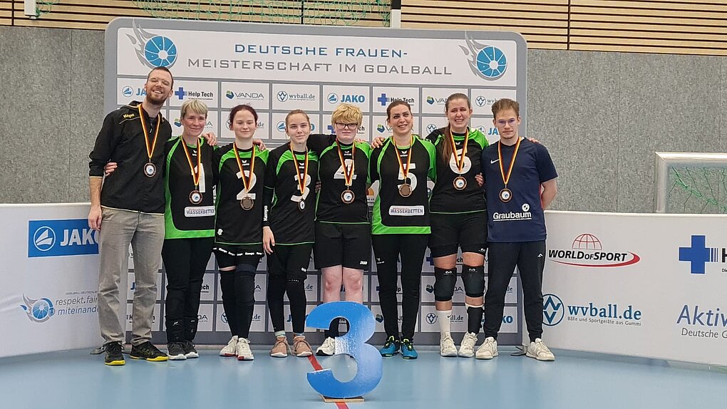 letzten Sekunde spannend. Mit nur einem Tor (3:4) verfehlte man die Silbermedaille denkbar knapp. Das „Bronzeteam“ wurde vor, während und nach den Spielen sehr kompetent von Coach Samuel Ketelhut und Assistenzcoach Christian Mair betreut. Auf dem Feld führte Centerspielerin Magdalena Hofer die Mannschaft durch das Turnier. Ebenso wie Linksaußenspielerin Hannah Linke glänzte sie durch tolle Abwehraktionen und leitete das Spiel taktisch klug. Und so war es dann auch mehr als verdient, dass sie am Ende des Turniers den Titel des MVP (Most Valuable Player) verliehen bekam. Rechtsaußenspielerin Samira Jalilvand überzeugte in der Abwehr und im Angriff mit etlichen Toren. Komplettiert wurde das Team durch Andrea Kunz und die beiden Nachwuchsspielerinnen Jette Schultz und Lucia Seifert. Die beiden letztgenannten spielten erst ihr zweites Goalballturnier und konnten dennoch schon zeigen, welches Talent in ihnen steckt.
